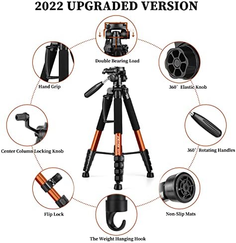Tripod Camera Tripods, 74″ Tripod for Camera Cell Phone Video Photography, Heavy Duty Tall Camera Stand Tripod, Professional Travel DSLR Tripods Compatible with Canon Nikon iPhone, Max Load 15 LB